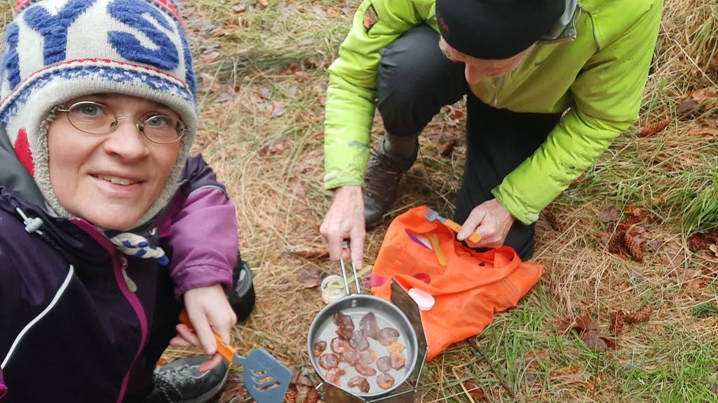 With rumbling stomachs we set up “camp” in a forest clearing, and fried the shanks on the stove. Oh boy, hot from the pan and infused with woodland aroma, they were the best!