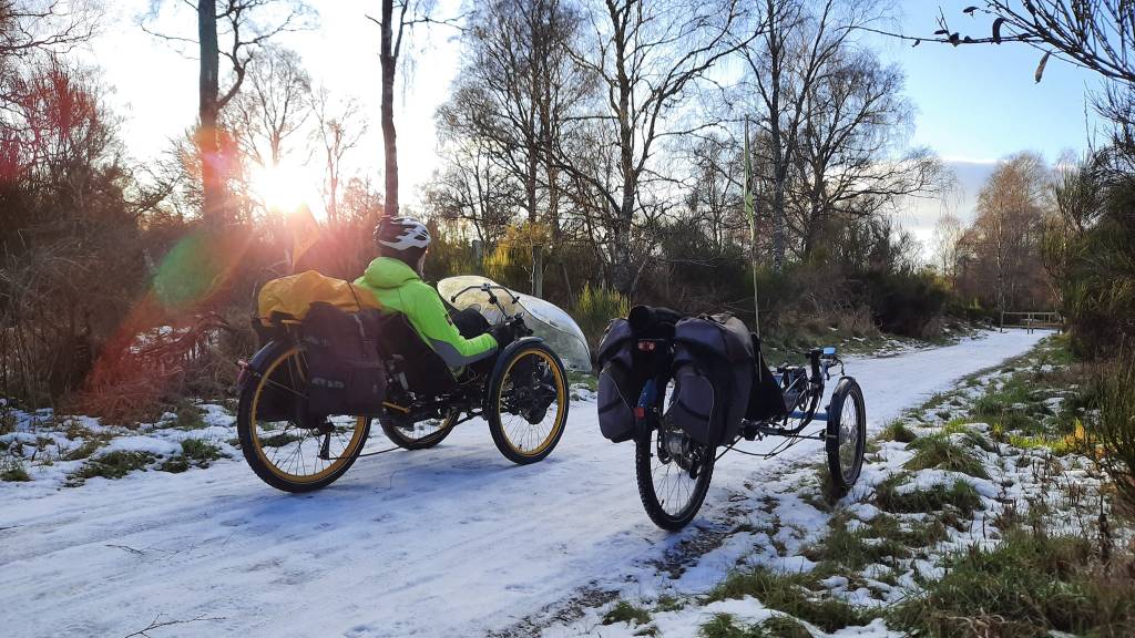 It seemed a great idea, back in August, to book a few days’ holiday in Ballater at the beginning of January. As the nights drew in and temperatures plummeted, we realised just what a challenge we’d set ourselves up for! Wearing pretty much everything we owned, we headed off into the crisp winter sunshine, on our beautiful trikes (designed and built from scratch by John).