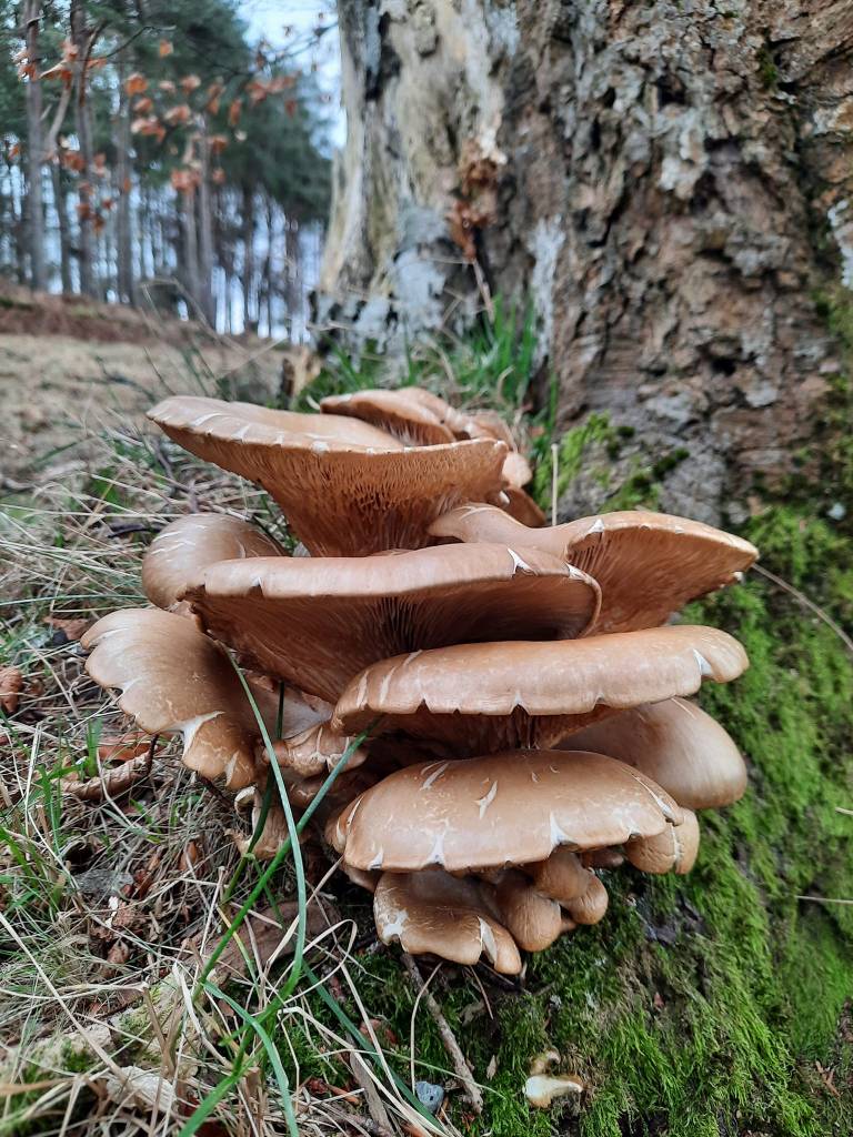 What a week(end) it’s been for food! On Saturday I was out cycling and really only expecting to find Chaga. But as my eyes roved the roadside, suddenly I spotted this magnificent flush of Oyster mushrooms.