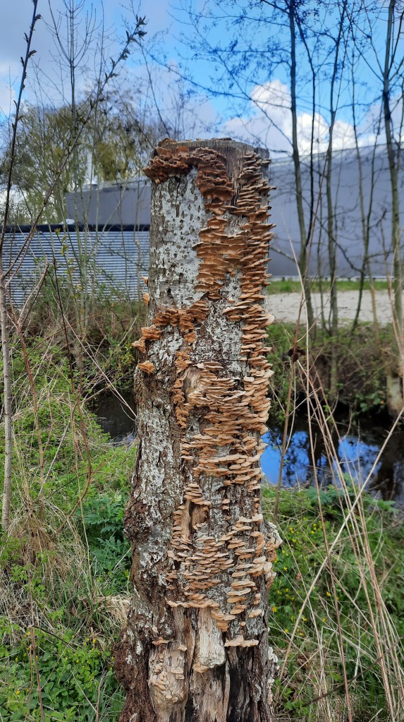 It seems that the natural world is a bit further ahead in The Netherlands than it is in the UK. Some trees already had leaves, and the Rosebay Willowherb (another useful edible!) was coming up above the soil. On a tree stump, some remnants of Turkey Tail mushrooms were visible. These can be dried, ground to a powder and used to make tea:
