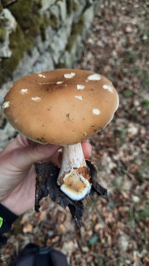 Everyone knows that going shopping when hungry, and worse, without a list, means that you end up with more than you’ll need. It was a bit like that on my forage this afternoon! Having decided to pick my own supper, and having vaguely decided on some kind of soup, I headed for the woods with a large rucksack. First up was a Spring Cavalier mushroom that I’d passed on my trike ride this morning. It was a nice big one.