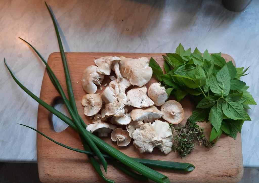 With Ground Elder aplenty, and onion tops at home ready to be picked, plus some fresh thyme from the front garden, a recipe soon began to take shape in my mind. Here are my wonderful ingredients: