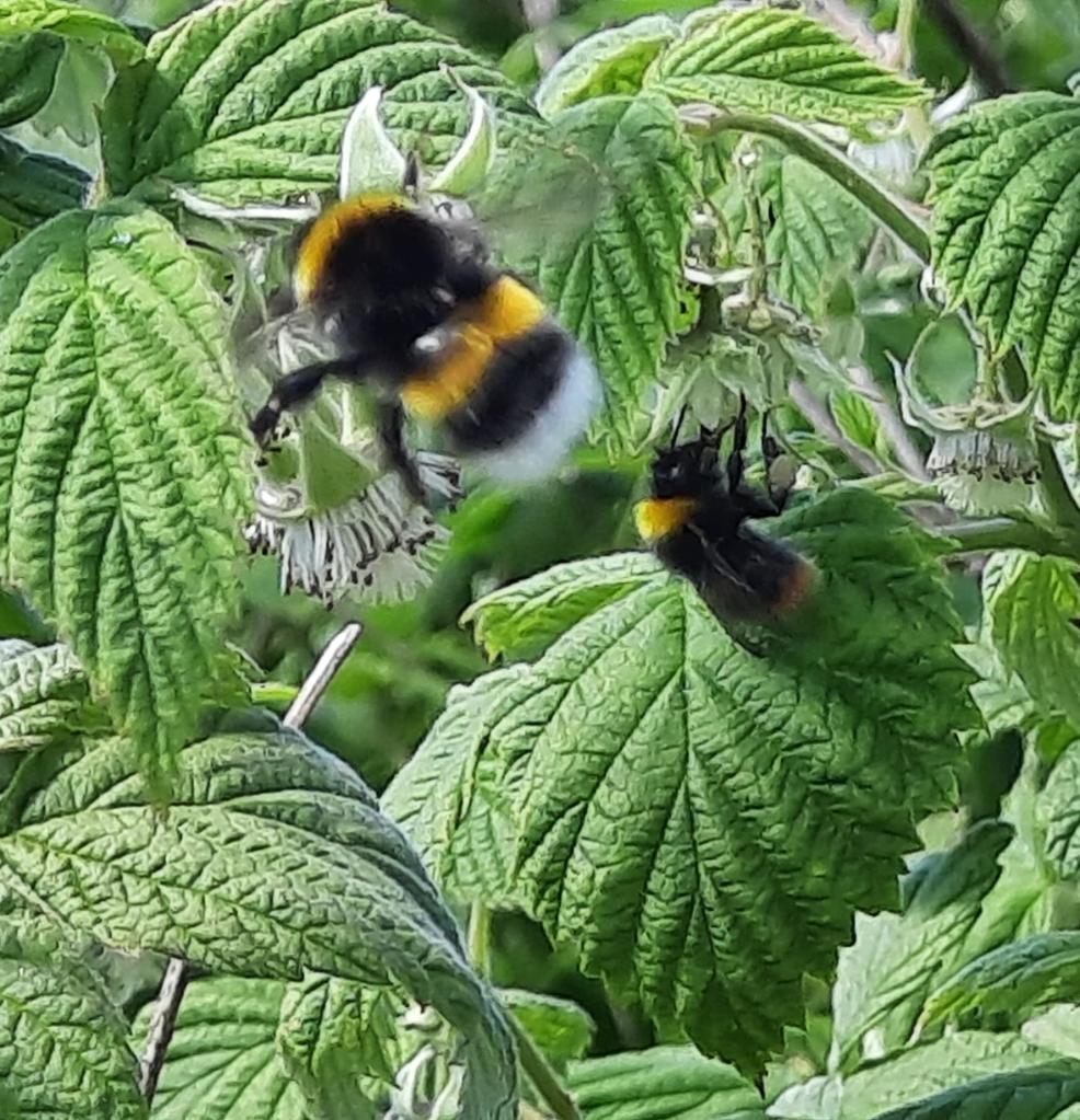 Finally, it’s been a week of bees. I’m currently trying to find a way of persuading our local housing estate company Dandara to create a wildflower garden. Or at least to stop the senseless fortnightly mowing of the large swathes of grass surrounding the estate. On Thursday I walked there when they were mowing, and just one patch of clover was left. It was completely covered in bees – all trying to hold on to the last few flowers. I asked the mowers if they could please spare that patch. But they said no. The ‘local residents’ would complain if they didn’t mow everything. Well, if these local residents prefer an ecological desert over a thriving habitat for insects and birds, it’s no wonder the world is in the state it is. I’ve written to my local councillor (again) to ask for help in the matter – will keep you posted. Meanwhile, please enjoy this picture of two bees hard at work. Without them, our society would collapse. If you read this and you want to make a difference to their fate (and ours!), consider the kinds of plants you have in your garden (do bees like them?), where your food comes from (has pesticide been used?), and have a look around your neighbourhood to see where you might initiate change. It all does help!