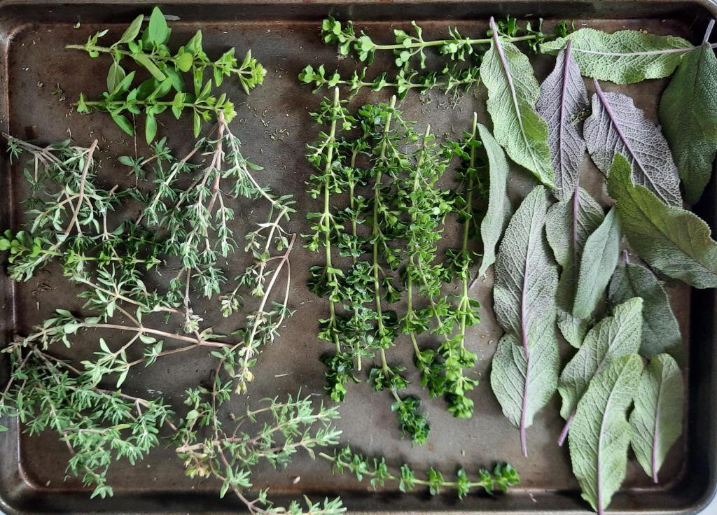The herbs come from Hazlehead Park. Next to the restaurant is a border with all sorts of plants. I imagine the original owner intended this to be a kitchen garden. I doubt the current owners are using it as such, and nobody stopped me when I walked in wielding a pair of scissors. I’ve dried them in a low oven. I think I’ve got thyme of two kinds, marjoram and sage.