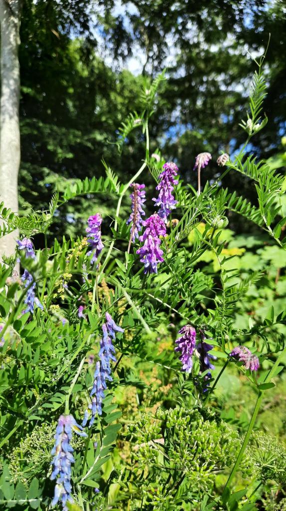 With these lovely potatoes, and together with the first of our onions, I made a Vetch soup. Vetch is abundant right now and I wanted to pick it before this week’s heatwave. It tastes a bit grassy, pea-like, which is not surprising as it’s from the same family.