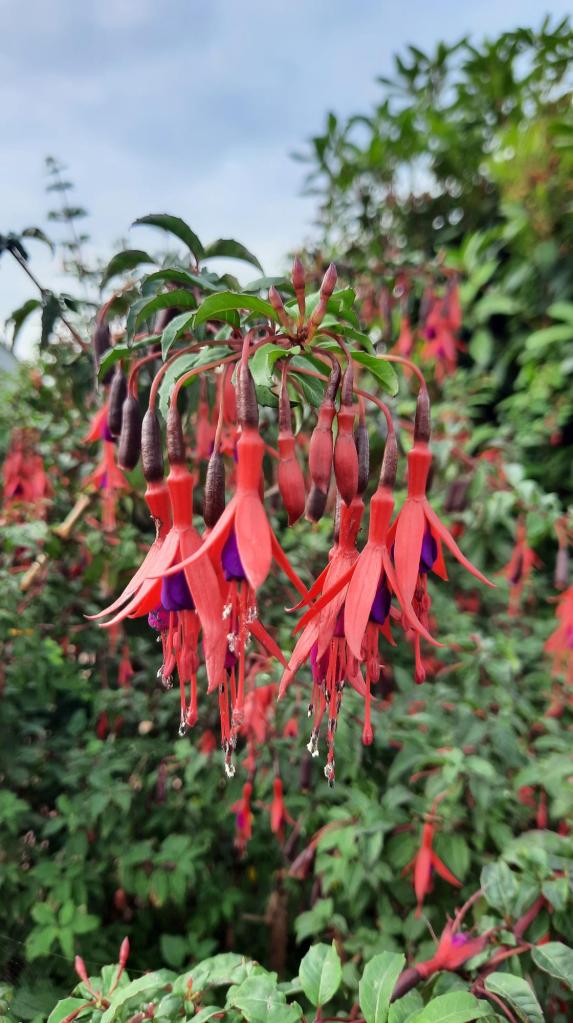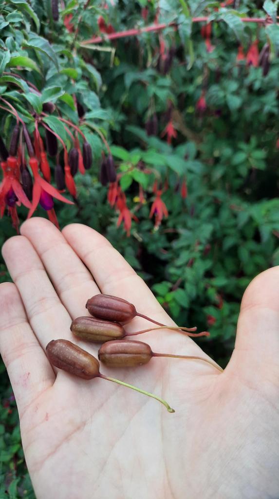 To end this epistle, let me tell you about another fruit that most people don’t eat, but which is in fact quite tasty: the fuchsia berry. Fuchsias come in lots of different varieties, and some berries are tastier than others, but they are all edible. Look for the plumpest ones that come off easily. The taste, I’d say, is something like a cucumber with very faint notes of fig. Give it a go!
