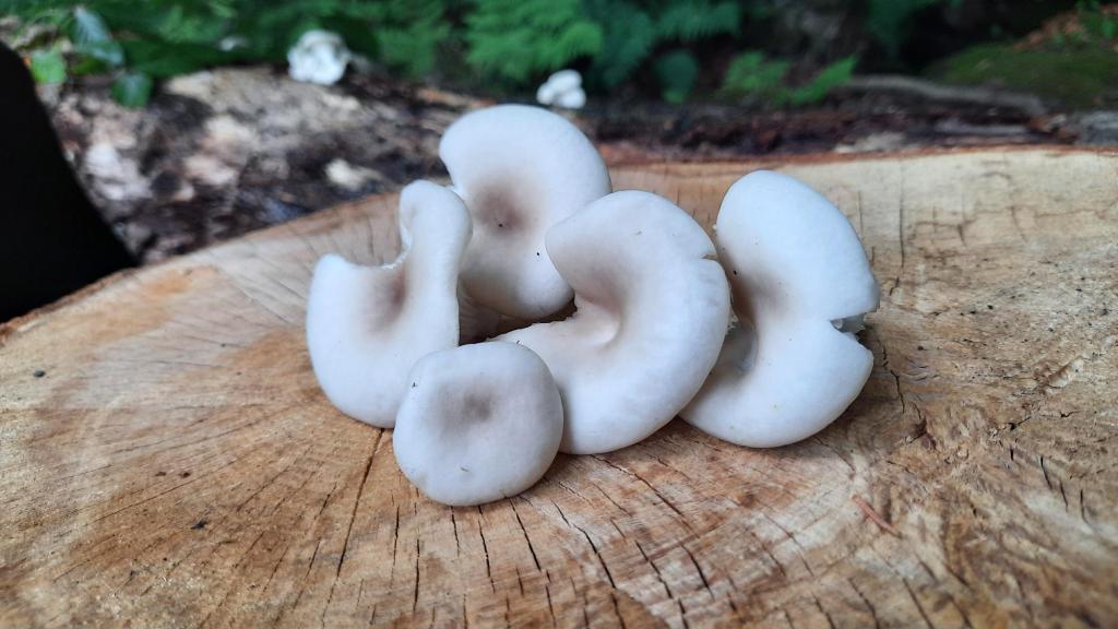 And then there were the mushrooms! We had one morning of rain this week, which brought them out. I feel immensely grateful that a beech forest starts about half a mile from my house, featuring most types of mushroom that I would also find further afield. I picked a wonderful collection of Charcoal burners later that day (they shoot up out of the ground at almost visible speed) and later on discovered that a beech log had started sprouting tiny pinheads of oysters. I feared that the heatwave might kill them off, so I went back the next day and the next with bikebottles full of water. It paid off! Yesterday and today they had grown enough for us to eat them: