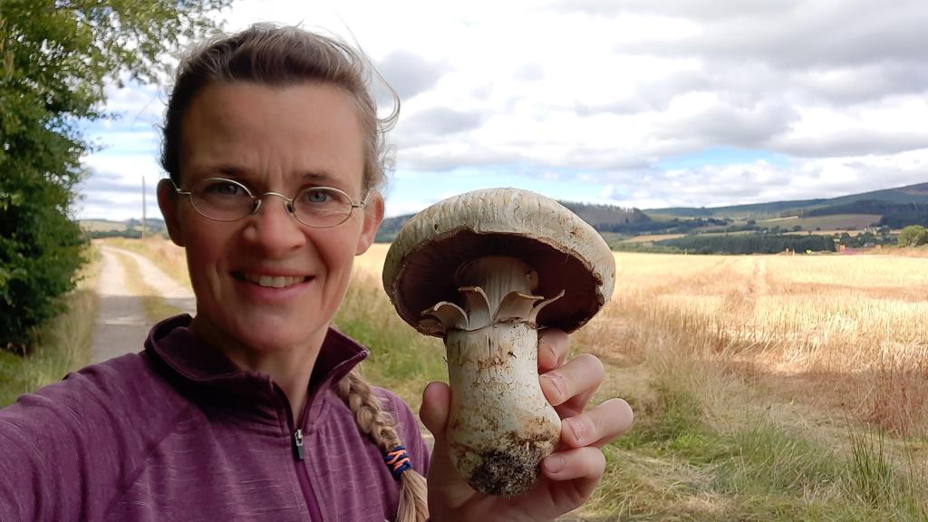This impressive looking specimen likes to grow in salty areas. However, in the picture you see me standing beside the Aberdeen-Alford road. Not a sea in sight. Why does it grow there then? Well… it’s because of the gritting in winter! This sprays the verges with enough salinity for this mushroom to carve out an existence in a microhabitat. Shop-bought button mushrooms are of the same genus as this one – many of the features are the same. Apart from the size!