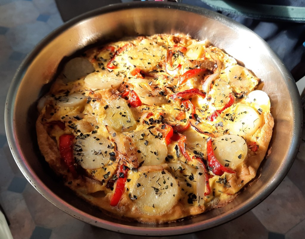John worked his magic on the peppers: they went into a Spanish omelette with bartered egg, homegrown tatties and onion.