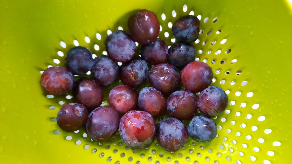 That said, the title of this blog is ‘the happy forager’, so let me tell you the reason for my sunny state of mind: the past few days have seen an abundance of new food that has ripened. Plums, pears and peppers!