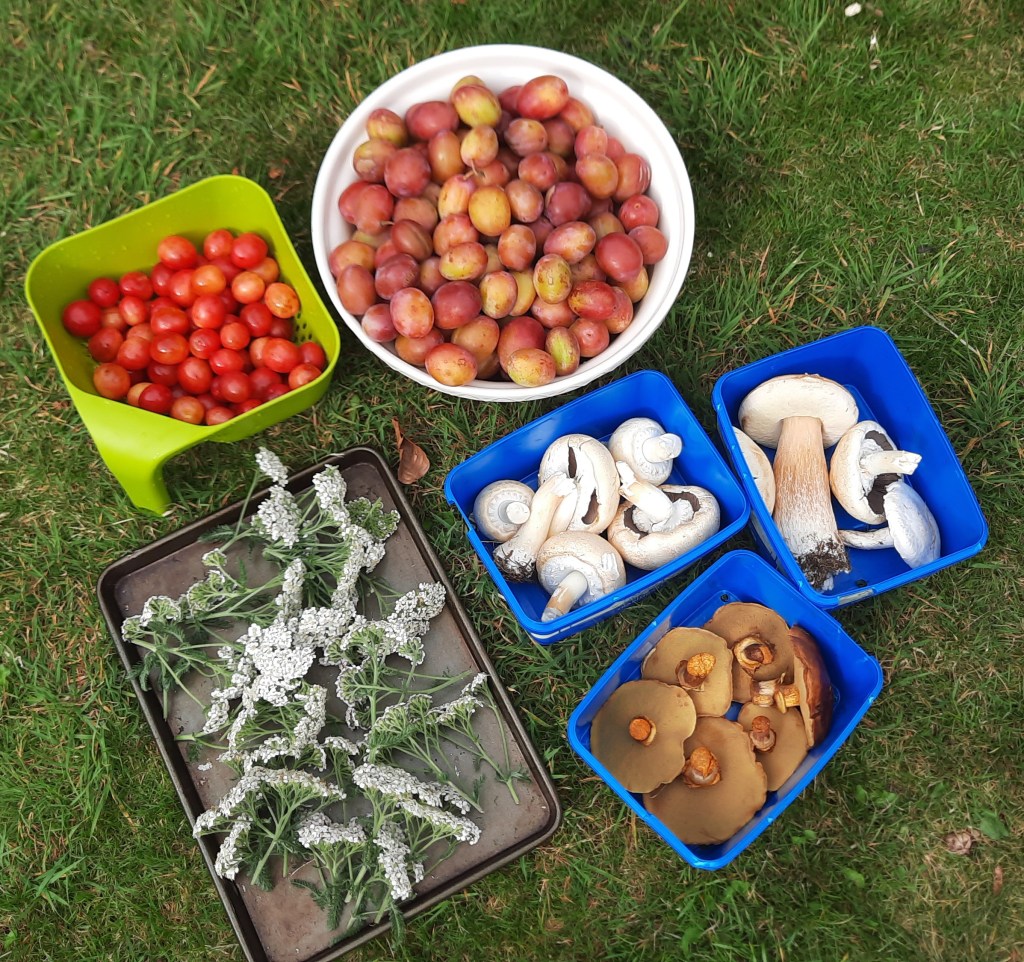 Meanwhile, the foraging and homegrowing continues. This weekend was an absolute bonanza of Shire fruit, mushrooms and red peppers. I think the pictures will speak for themselves: