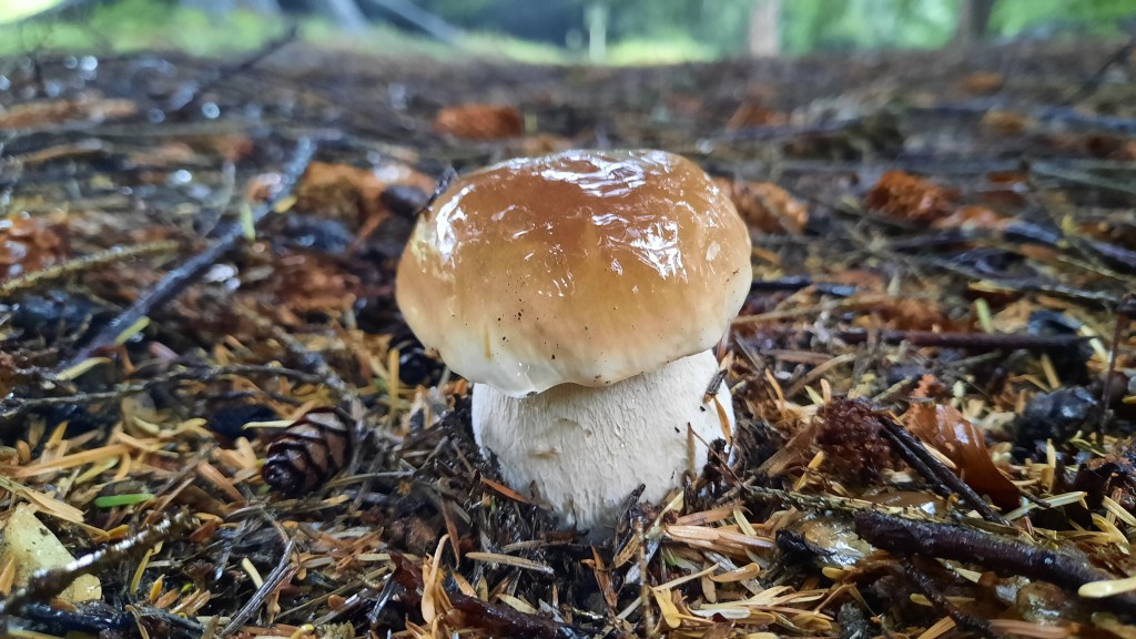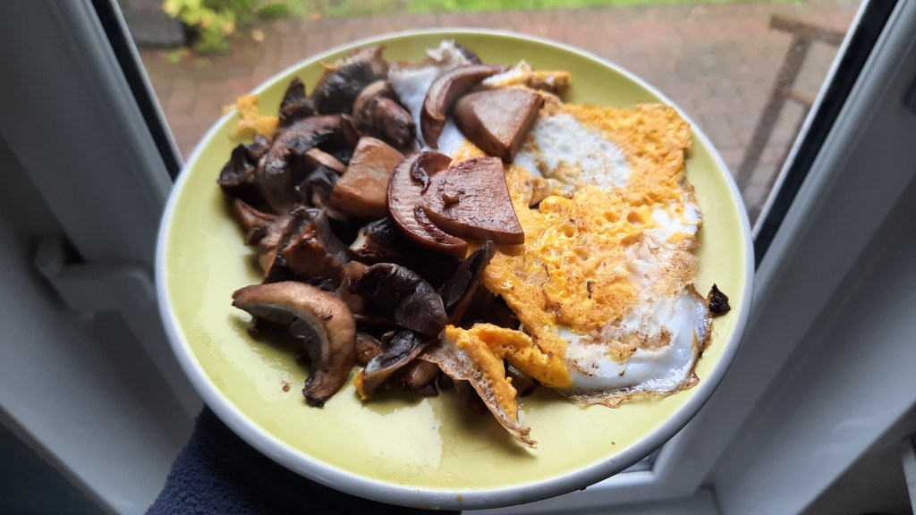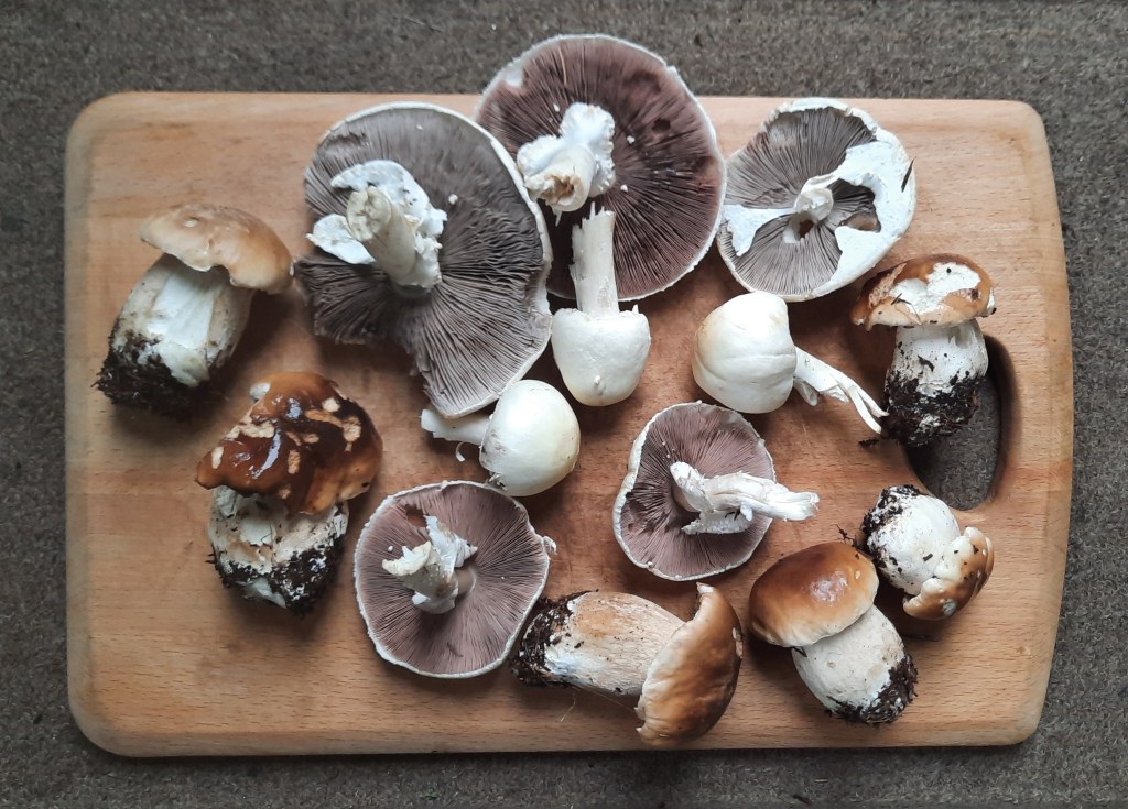 It has been raining most of the day and is likely to do so all week. Fantastic news for the mushrooms and the apples that are ripening. Not such good news for any remaining blackberries, as they spoil quickly in the rain. So I’m picking as many as I can – we currenly have two gallon of wine on the go. Cheers!