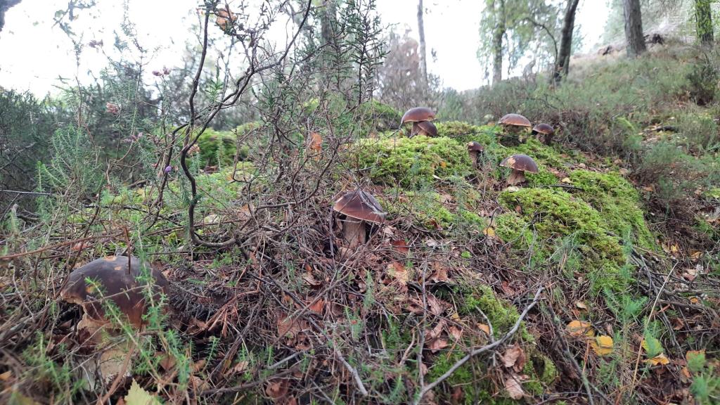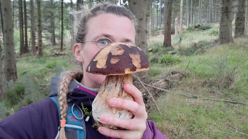 I didn’t intend to pick mushrooms today, but I was so utterly surrounded by them, in an Eden type of forest, that I just had to. Scarletinas, Porcini, Puffballs, Amanitas, Russula, Orange birch bolete…. So many species were there! As my time on the hill increased, gradually the sense of sadness for the Queen was replaced by a sense of gratitude; to be alive, to live in a beautiful part of the world, and to be greeted by such bounty in the forest.