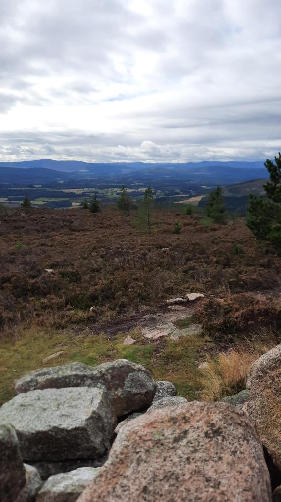 Today I walked up Hill of Fare to listen to the Queen’s funeral, while looking at the landscape she loved. It has excellent views of the Cairngorms.