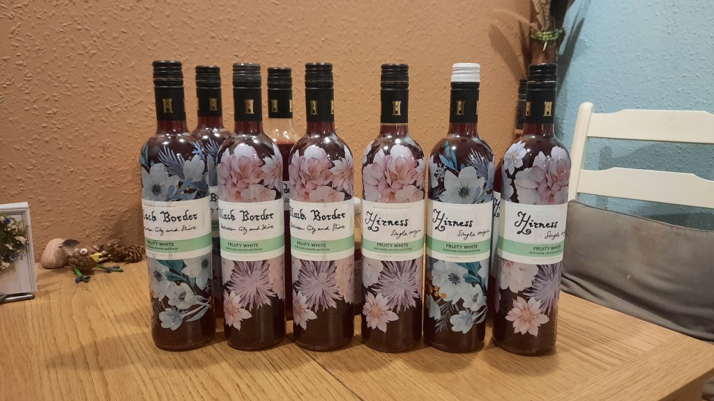 The fruit for the Black Border wine came from Peterculter and Wester Ord, which is where the boundary runs between City and Shire. I picked them on a very early, cold August morning with the sun low in the sky and the mists hanging over the fields (and I regretted wearing cycling shorts!). The Hirness fruit is named after the hamlet of Hirn, about 14 miles from Aberdeen. I always say to John that I would love to live there. Hirn feels like the centre of the Shire to me, equally close to lots of places I enjoy being. I picked the berries on a warm, sunny afternoon.