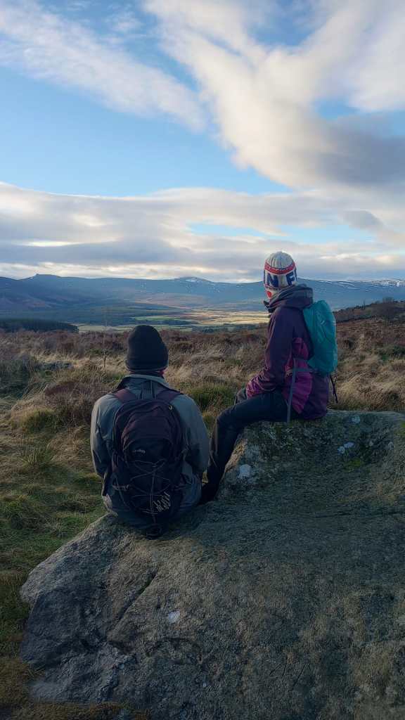 Yesterday morning, while roast turkey aromas whafted down the neighbourhood, John and I triked to Banchory on almost deserted roads. Our target: Scolty Hill! We choose a different hill every year and always take plenty of Christmas cake with us. It was awesome at the top and our eyes got drunk on the vistas that stretched out below us:
