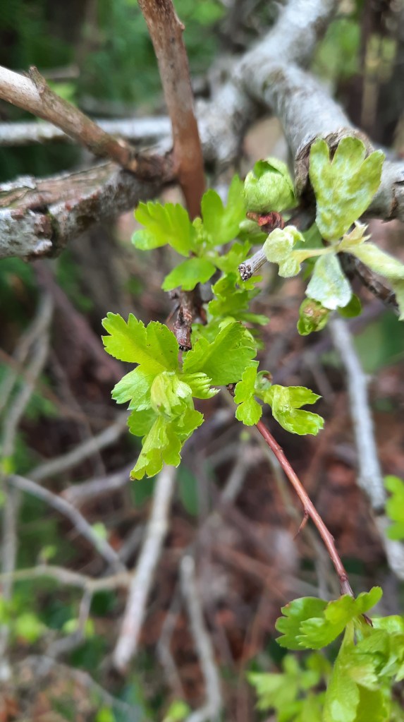 Even though it’s still pretty cold up here, things are happening on the leaf front. Today I saw the Hawthorn is coming out: