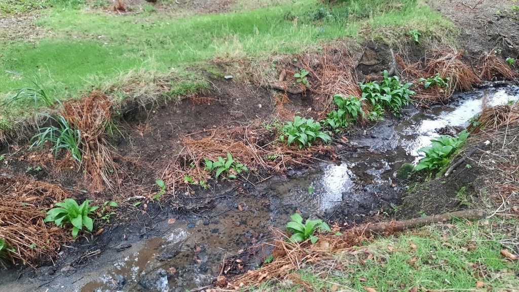 Great excitement as I walked on through the James Hutton grounds: wild garlic is finally here! I didn’t pick any as we don’t have a fully operational kitchen (the plan is to live on made-ahead microwave meals), but it was still lovely to see.