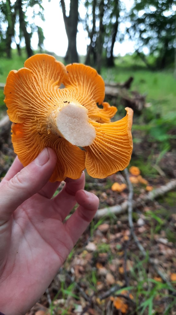 It’s also proving to be an exceptional year for chanterelles. I already found them last week, and I’ve continued to find them on every single bike ride. Here’s a wee beauty: