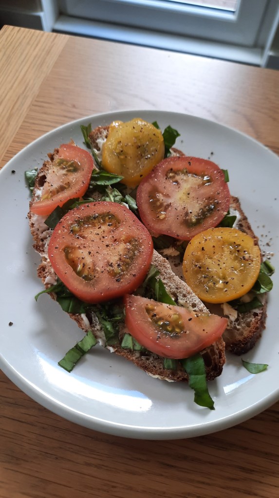 We have now officially entered Autumn, and with that comes a bounty of produce! We have been able to eat fragrant, juicy tomatoes every day, and John has a regular raid of the plum tree. Courgettes are still going strong and every so often I discover a whopper of a cucumber lurking in the greenhouse. How’s this for a delicious lunch: